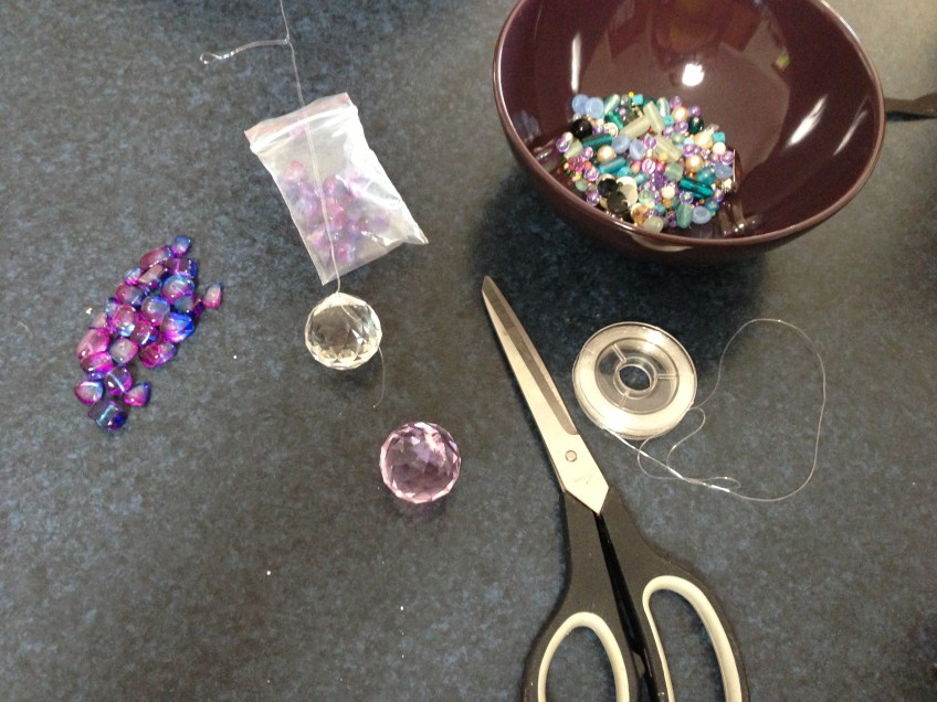 What you need. Published October 2, 2012 at 3264 × 2448 in Sun Catchers – School holiday entertainment. Sun catcher, miscellaneus beads and crystals, string or fishing line, scissors.