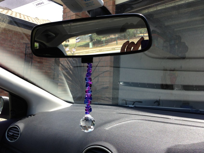 In the car. Published October 2, 2012 at 3264 × 2448 in Sun Catchers – School holiday entertainment. The one Trey made for my car. 🙂