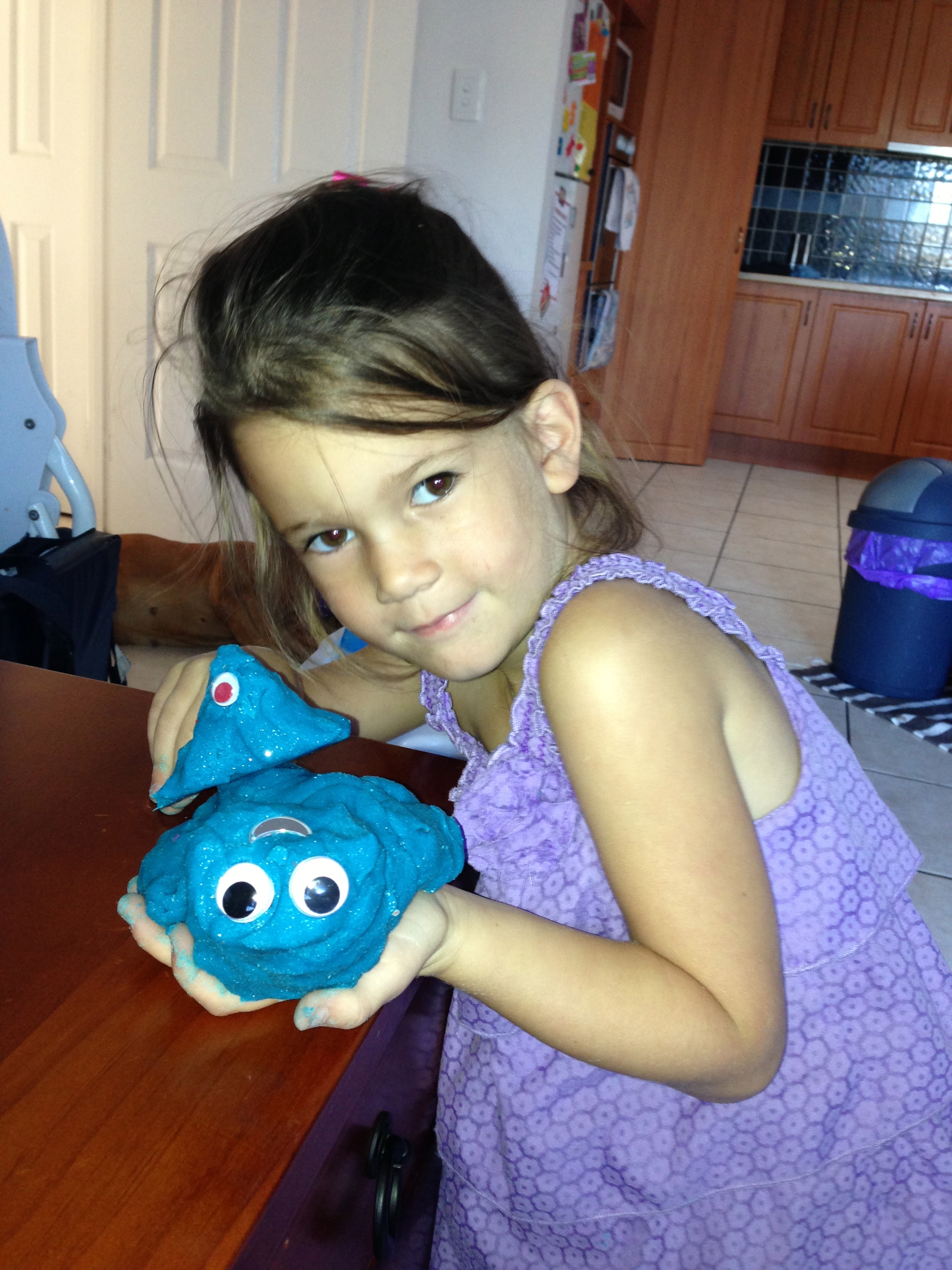 After establishing my daughter has low muscle tone, it was suggested by her occupational therapist that we use play dough to warm up her hands before any writing or drawing activities. Obviously it also has many other benefits, like fine motor, creativity, blah blah, but anyway. After buying all the different brands and them still ending up dry and ‘ordinary’ after a week, I decided it was time I got off my little b-hind and made our own. Unfortunately I only had blue food colouring on hand (because the kids always want some in the bath, so we go through a lot :s ) . I chose this recipe, as it had a 5 star rating. The only problem is I don’t have nor have ever bought cream of tartar? So some googling suggested I could omit it for baking powder and vinegar, but the vinegar was going to mess with the liquid content and ohhh, it all seemed too hard. So, as I do, I figured I’d just do a splash of this and a bit of that. I used about 1 tablespoon of white vinegar and 2 tablespoons of baking soda.