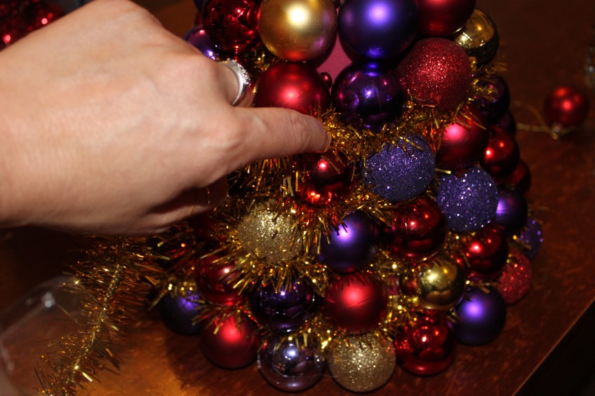 Poking tinsel in the cracks Published November 30, 2012 at 4752 × 3168 in Christmas Craft – DIY Bauble Tree