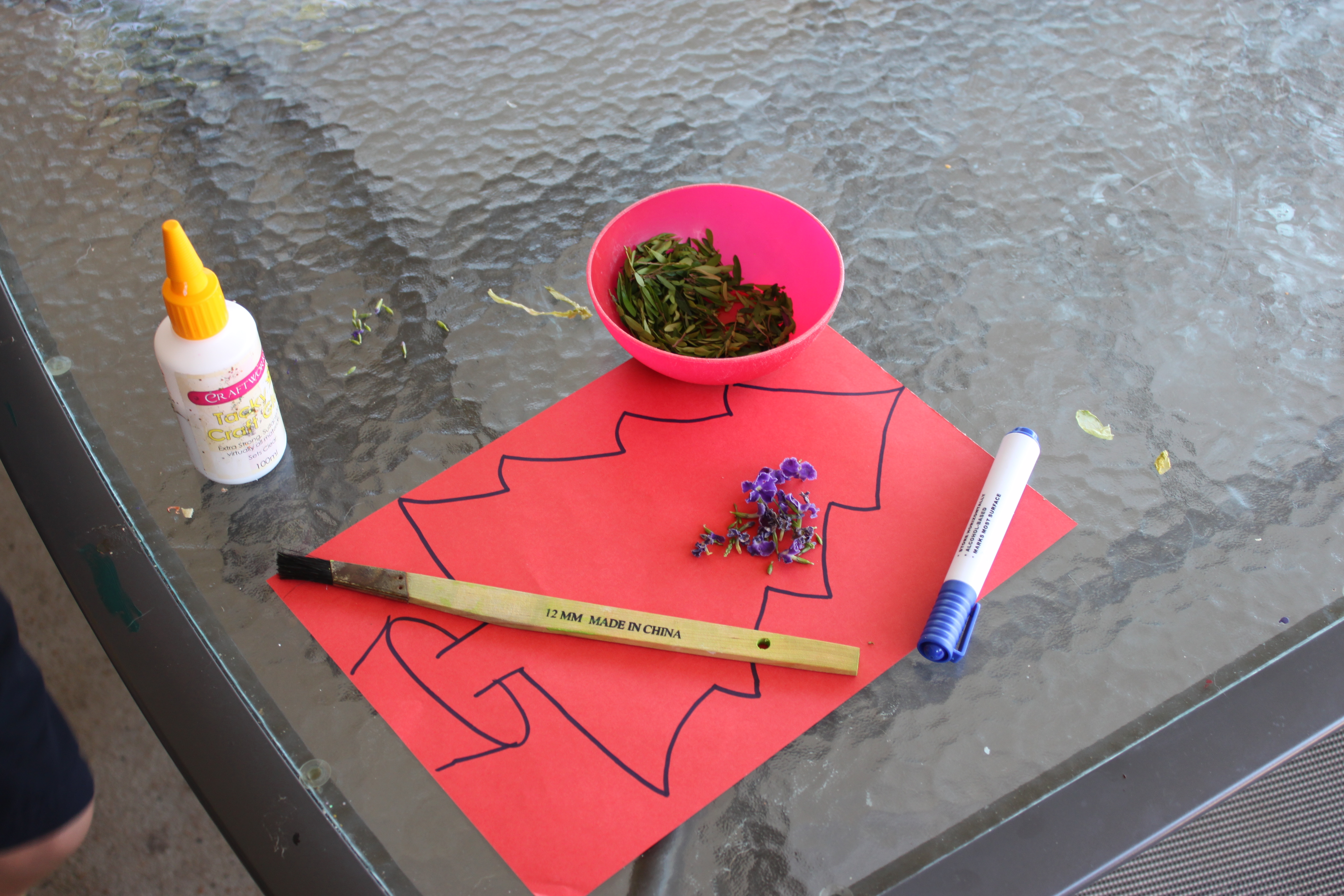 IMG_5881 Published December 3, 2012 at 4752 × 3168 in Quick Kids Craft – Christmas Themed Some craft glue, a marker, coloured paper, leaves and flowers and a brush.