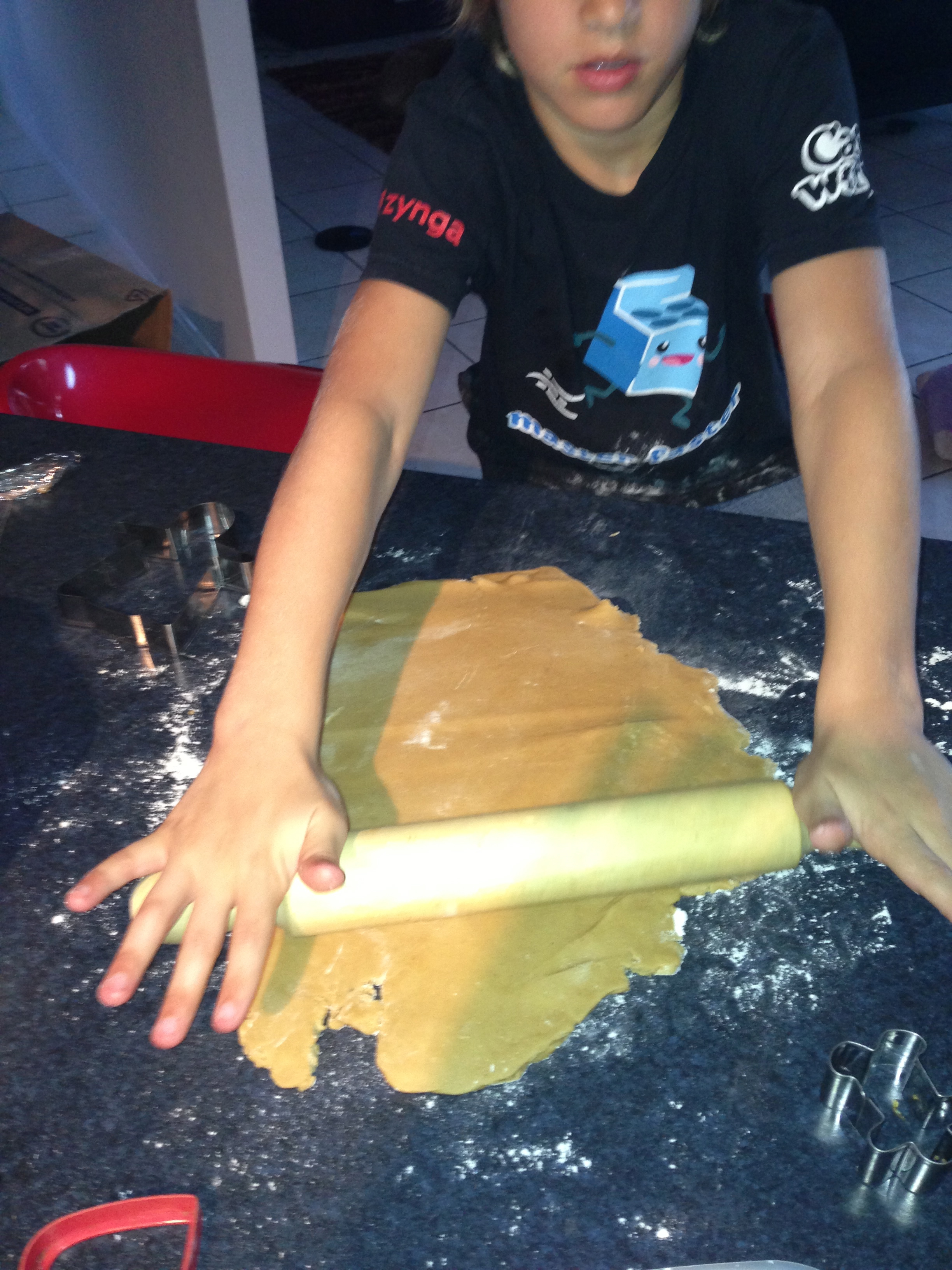 Rolling dough Published December 14, 2012 at 2448 × 3264 in Classic Christmas Cooking – Window Biscuit Decorations Mr 7 rolling the dough