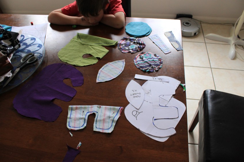 cutting out the pattern Published January 17, 2013 at 4752 × 3168 in Elephant Softie – Rainy Day Activity