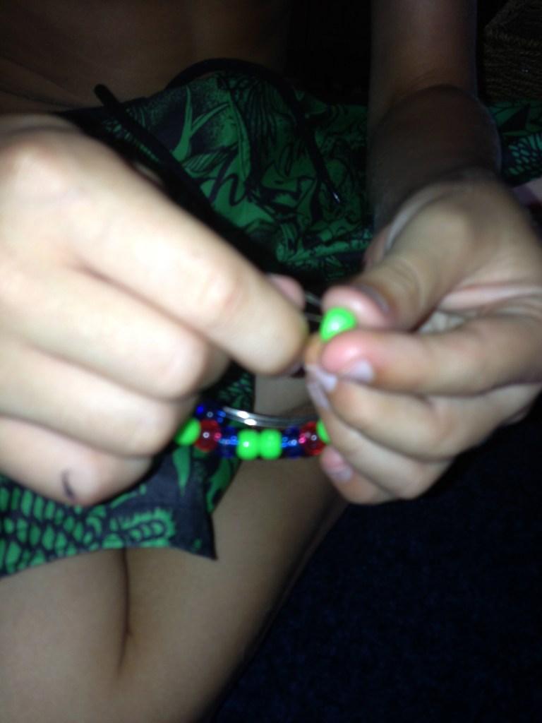 IMG_0896 Published January 22, 2013 at 2448 × 3264 in Memory Wire Bracelets, School holiday and Toddler Activity Mr 7 threading some beads.