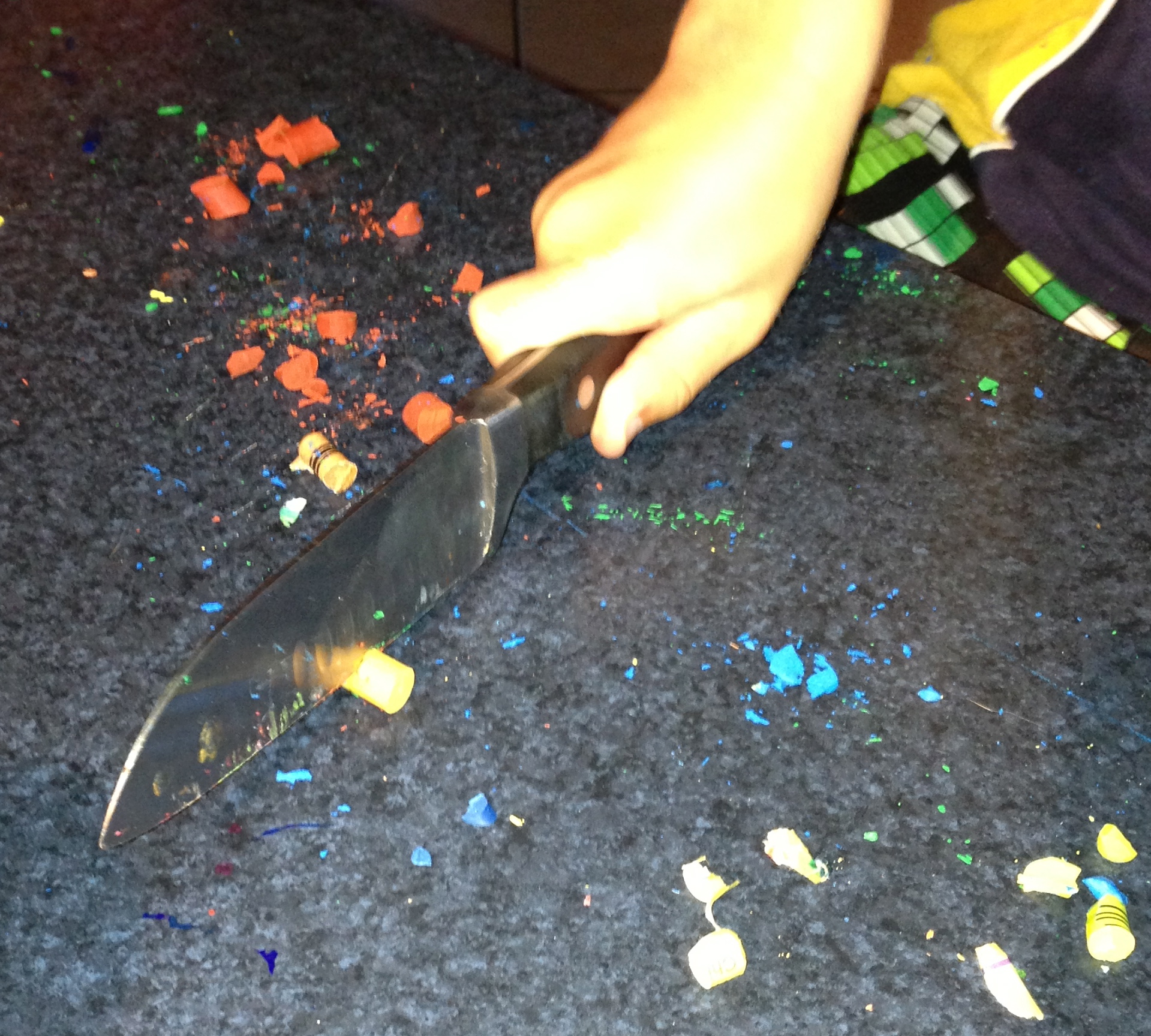 chopping Crayons Published February 12, 2013 at 1919 × 1728 in Valentine Heart Activities for the Kids, with a side of FAIL! Mr 8. Cutting the crayons into smaller pieces.