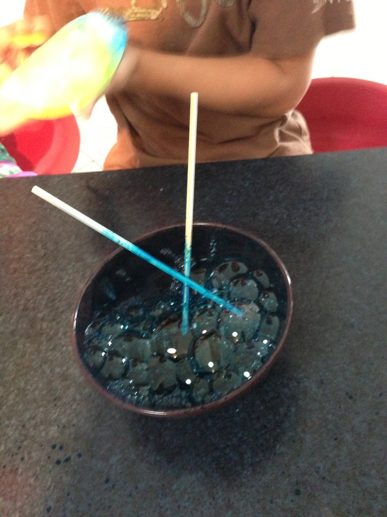Blue bubble mixture Published March 2, 2013 at 2448 × 3264 in Bubble Painting Easter Garland, Toddler Craft Activity Blue bubble mixture