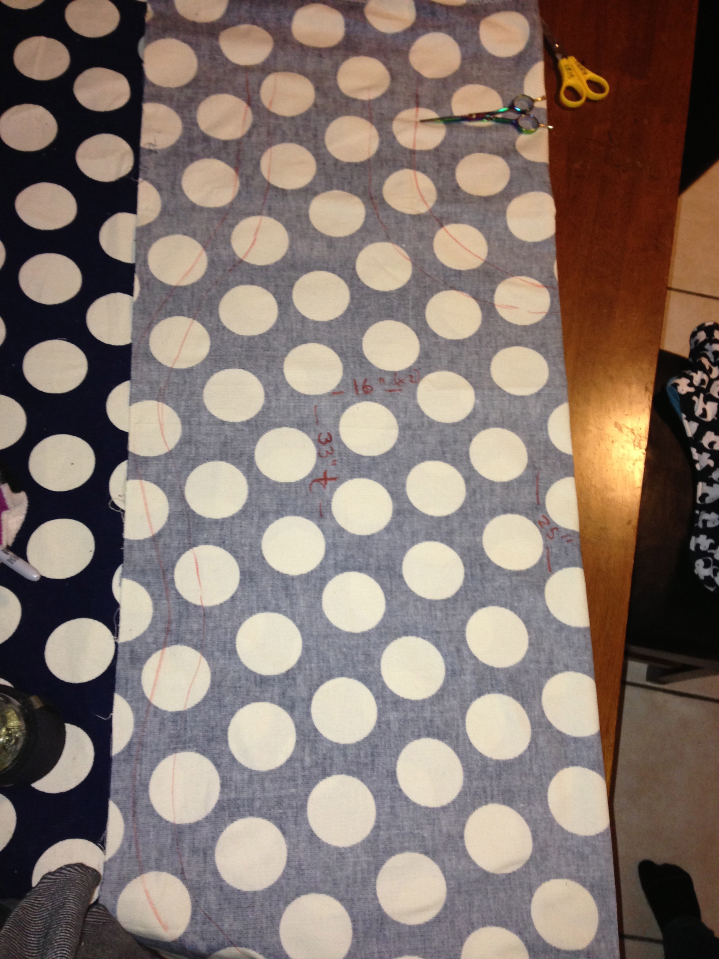 IMG_2139 Published May 26, 2013 at 2448 × 3264 in DIY Dog Coats. Fold fabric over, measure out required dimensions and draw in seam.