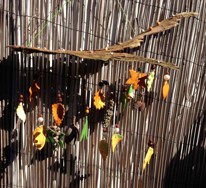 IMG_2636 Published July 27, 2013 at 2493 × 2286 in Autumn Theme Mobile, Using Oven Bake Clay Autumn and bush influenced mobile.