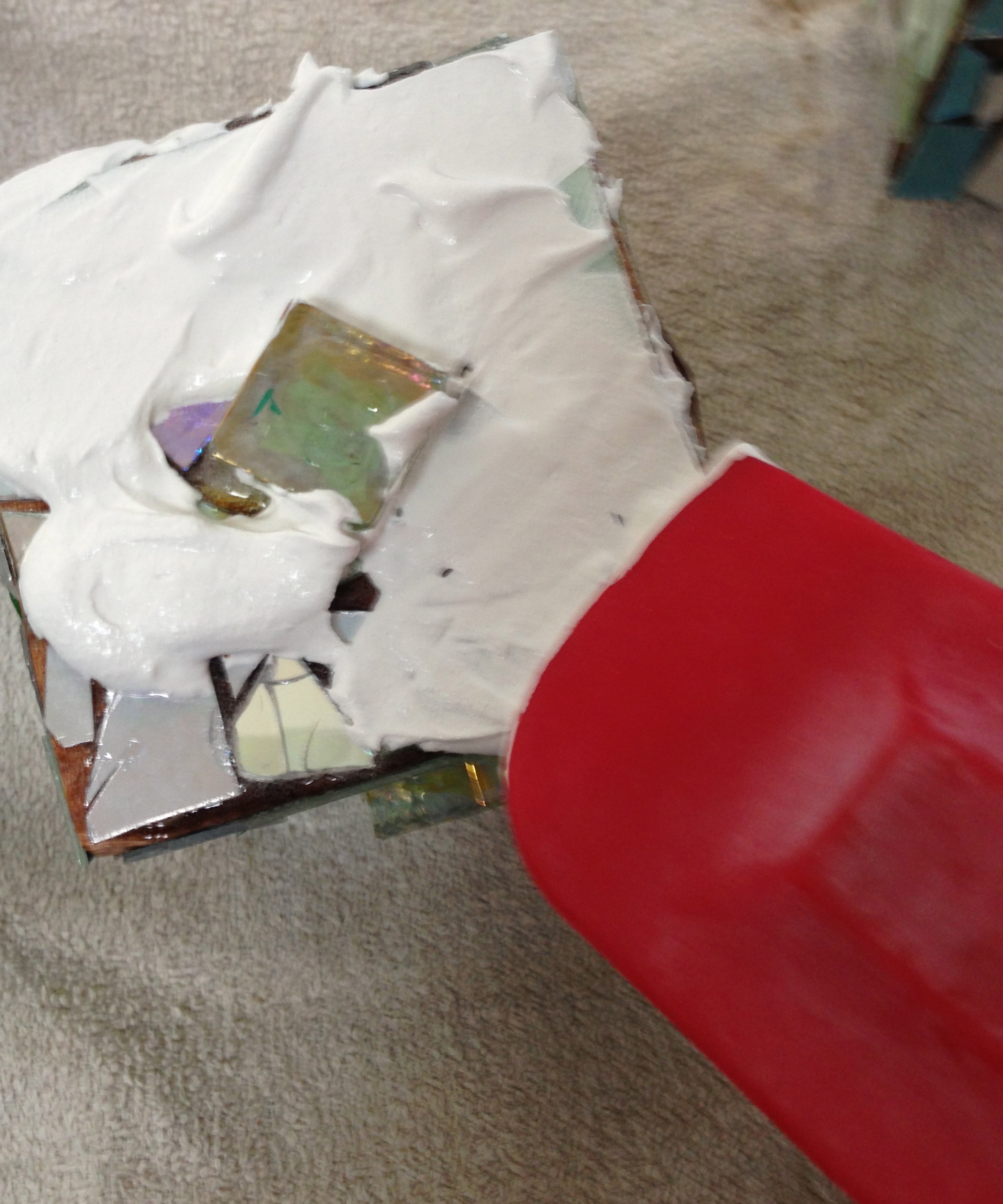 IMG_2570 Published July 26, 2013 at 2093 × 2513 in Upcycled CDs. Sun Catcher. Smooth over with a spatula (instructions for tiles suggest a squeegee)