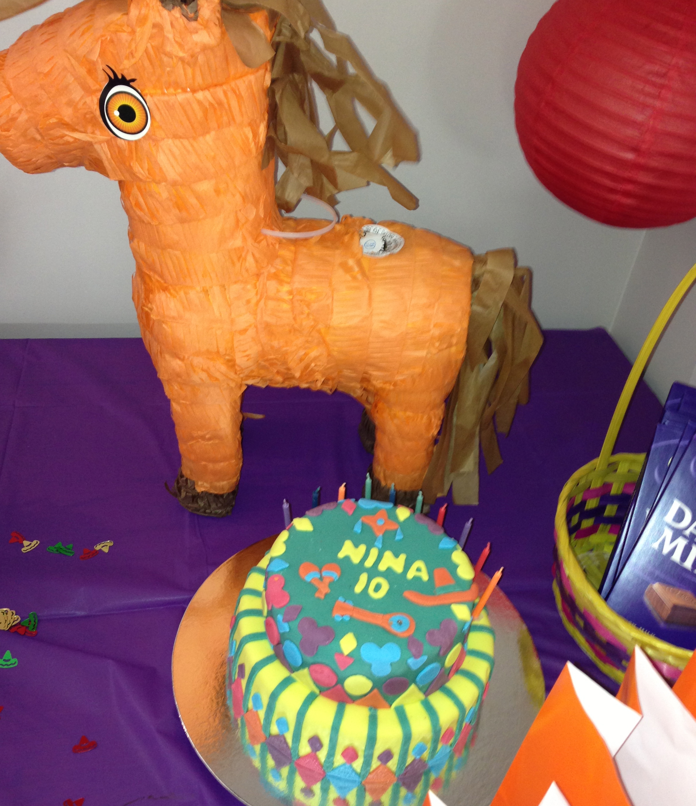 IMG_2009 Published September 13, 2013 at 2397 × 2774 in Mexican Fiesta Kids Birthday Party. Piñata and cake.