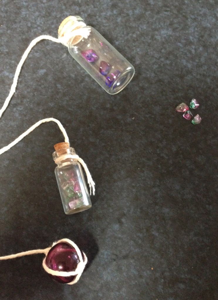 IMG_3481 Published October 1, 2013 at 2206 × 3040 in DIY Wind Chime, Candelabra/Sun Catcher. Some stone chips for colour, then secure with twine
