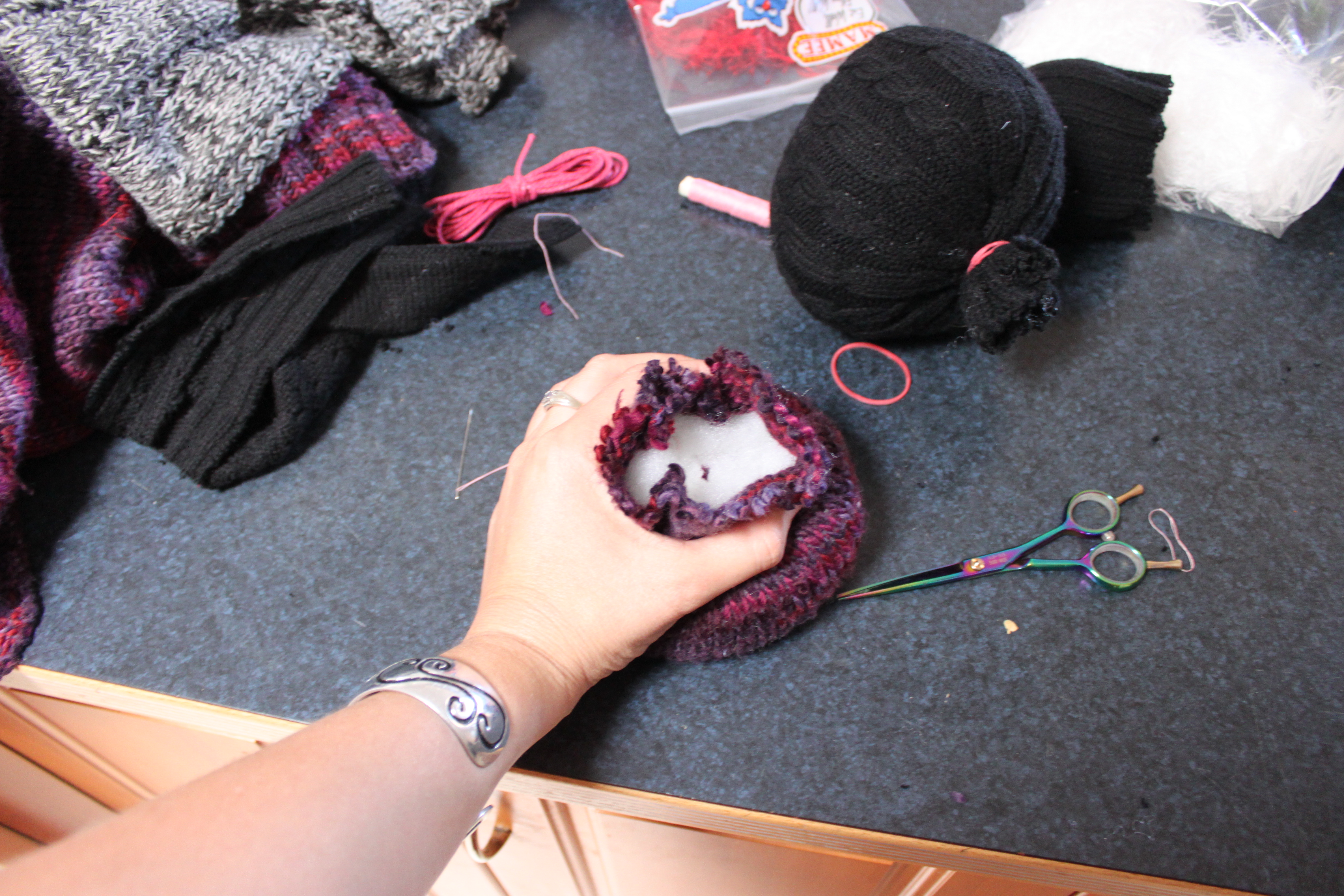 IMG_8067 Published October 7, 2013 at 4752 × 3168 in Knitted Pumpkins, Upcycled Jumpers/Sweaters Stuffed and ready to gather top.