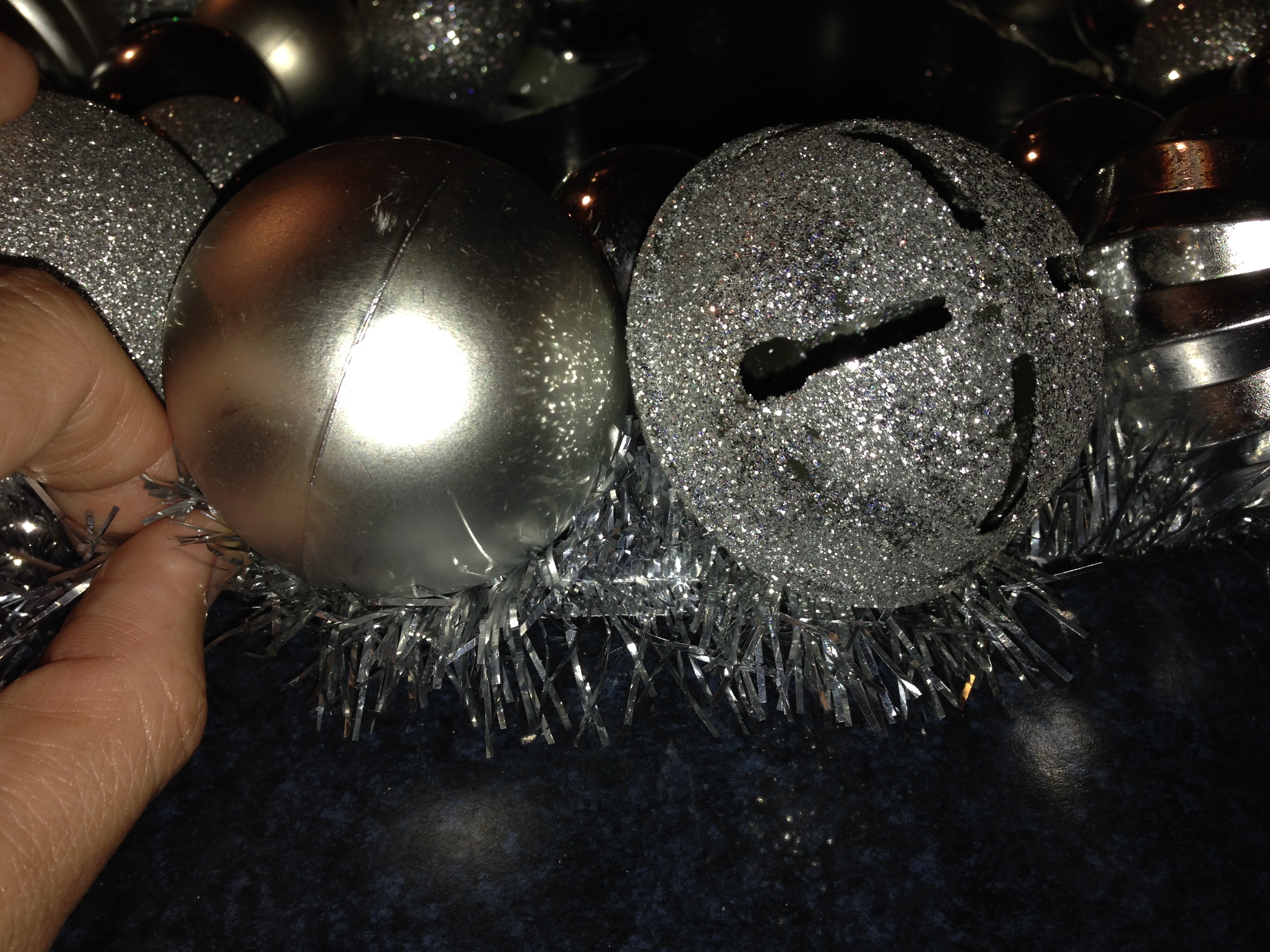 IMG_3739 Published November 16, 2013 at 3264 × 2448 in DIY Heart Shaped Christmas Wreath The glue is quite flexible, so you can weave the tinsel in and around each bauble easily, it will just hold in place when the baubles sit back into position.