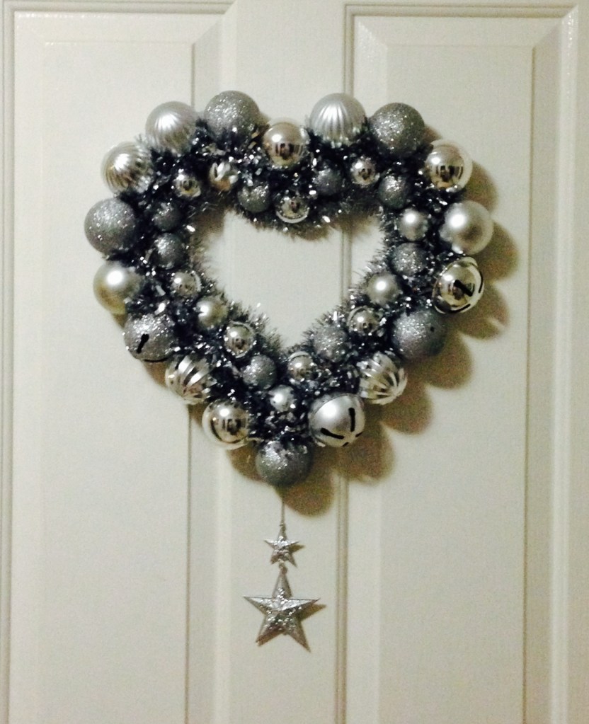 IMG_3746 Published November 16, 2013 at 1387 × 1707 in DIY Heart Shaped Christmas Wreath Bauble wreath
