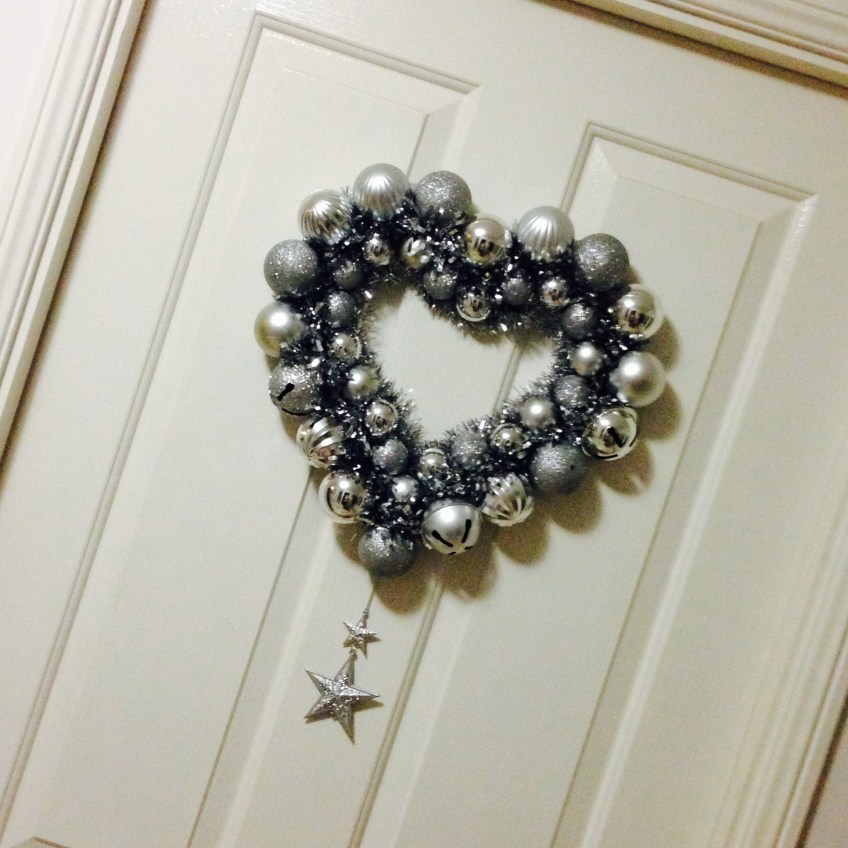 IMG_3747 Published November 16, 2013 at 1932 × 1932 in DIY Heart Shaped Christmas Wreath I hung a start ornament from the bottom just for some extra bling and dimension.