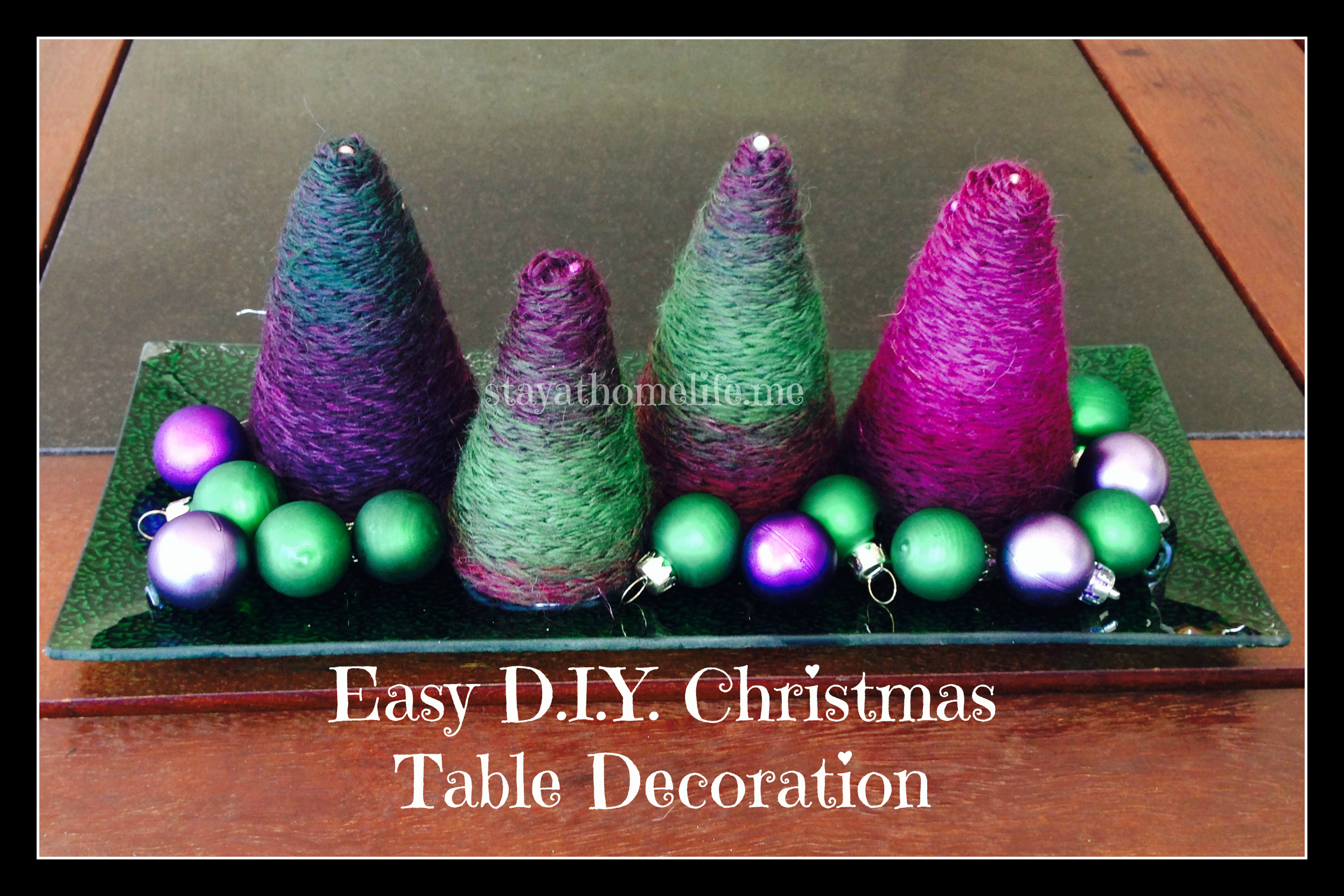 I picked up this wool a while back with nothing particular in mind, I just loved the colours. The styrofoam tree shapes are available just about anywhere at this time of year. These came from a $2 shop. However, there’s no reason you couldn’t just make a cone shape from cardboard and achieve similar results.