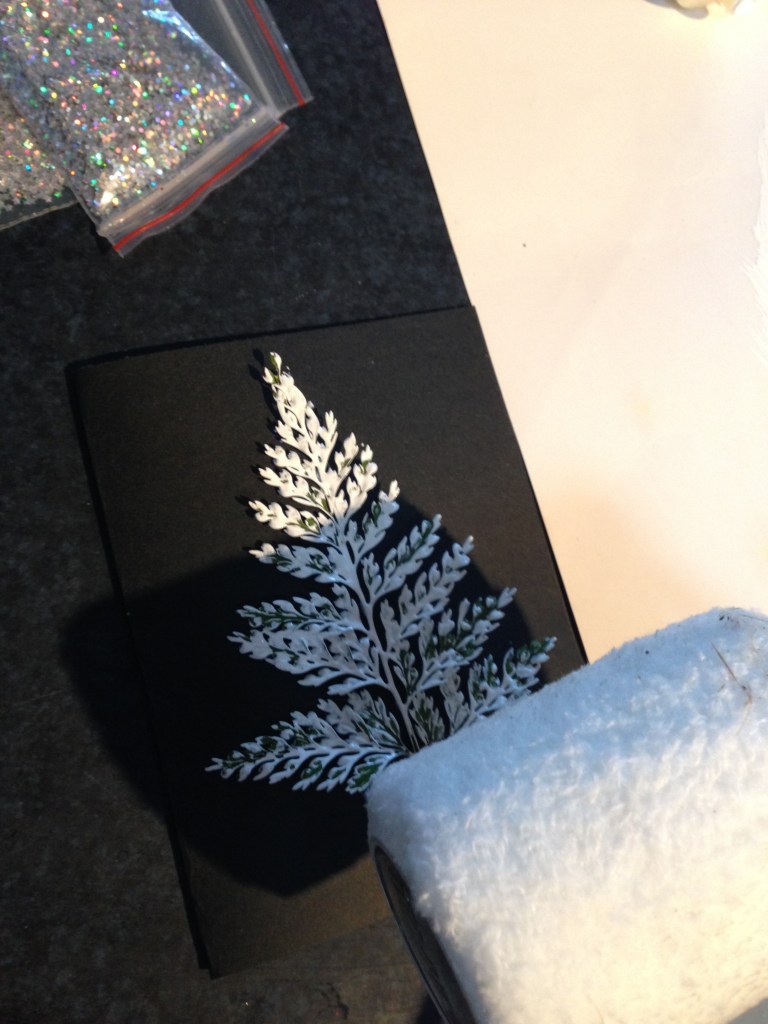 IMG_3836 Published December 5, 2013 at 2448 × 3264 in D.I.Y Leaf Print Christmas Cards Place on card and roll over to press down