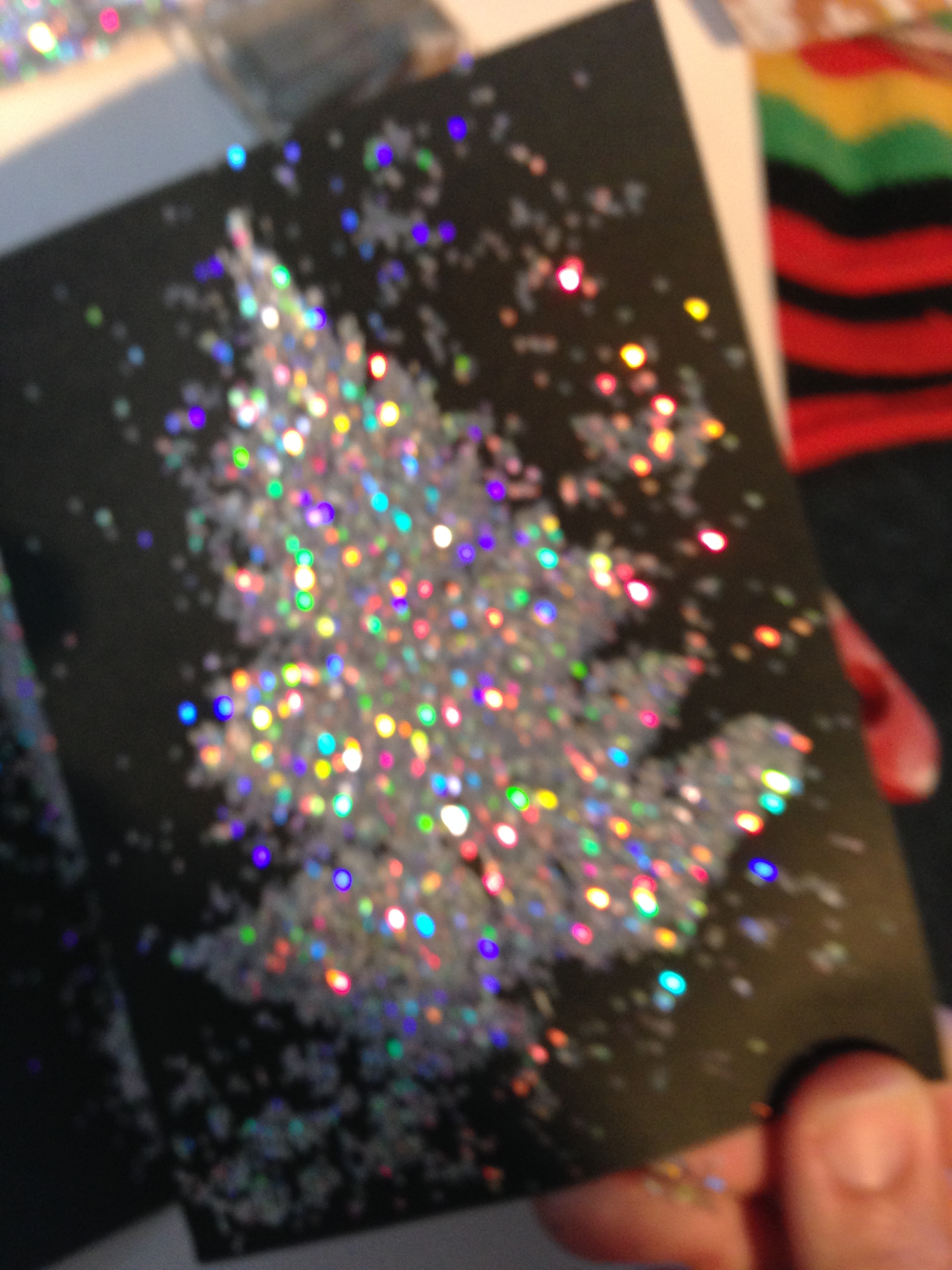 IMG_3838 Published December 5, 2013 at 2448 × 3264 in D.I.Y Leaf Print Christmas Cards Sprinkle with glitter while paint it still wet