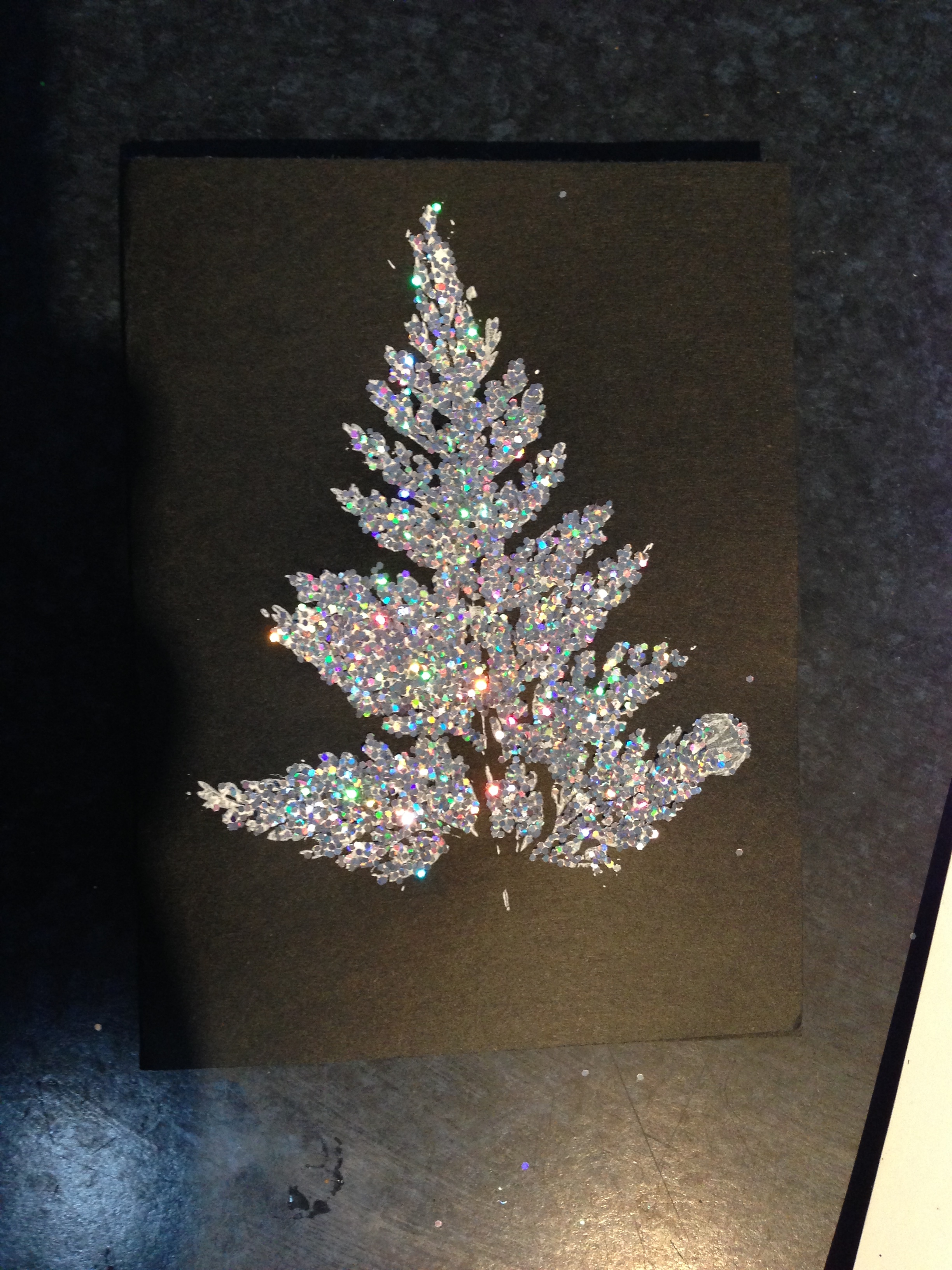 IMG_3839 Published December 5, 2013 at 2448 × 3264 in D.I.Y Leaf Print Christmas Cards Shake off excess glitter