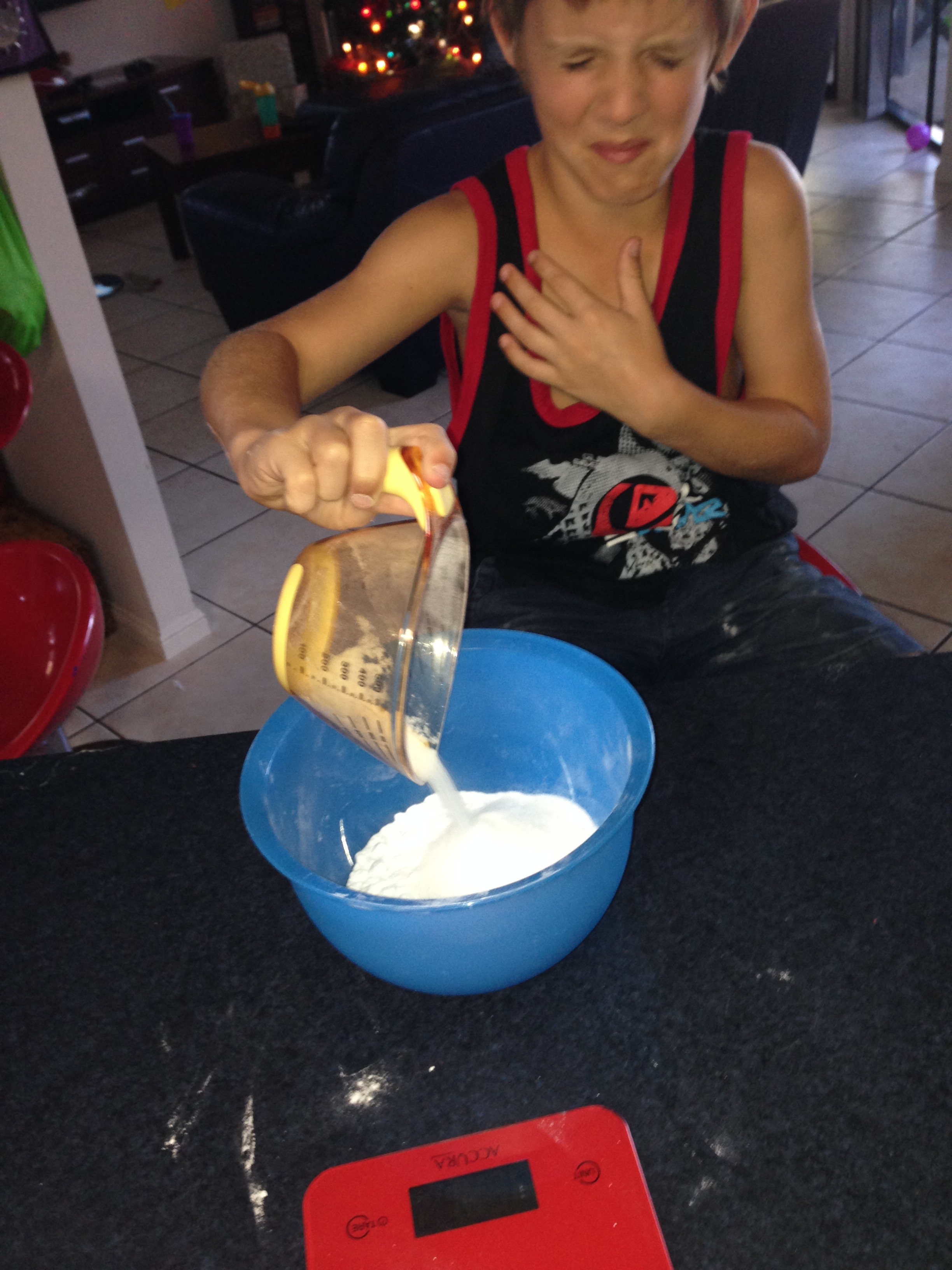 IMG_3989 Published December 10, 2013 at 2448 × 3264 in Make Your Own Sensory Santa Slime. Mr 8 adding dry ingredients