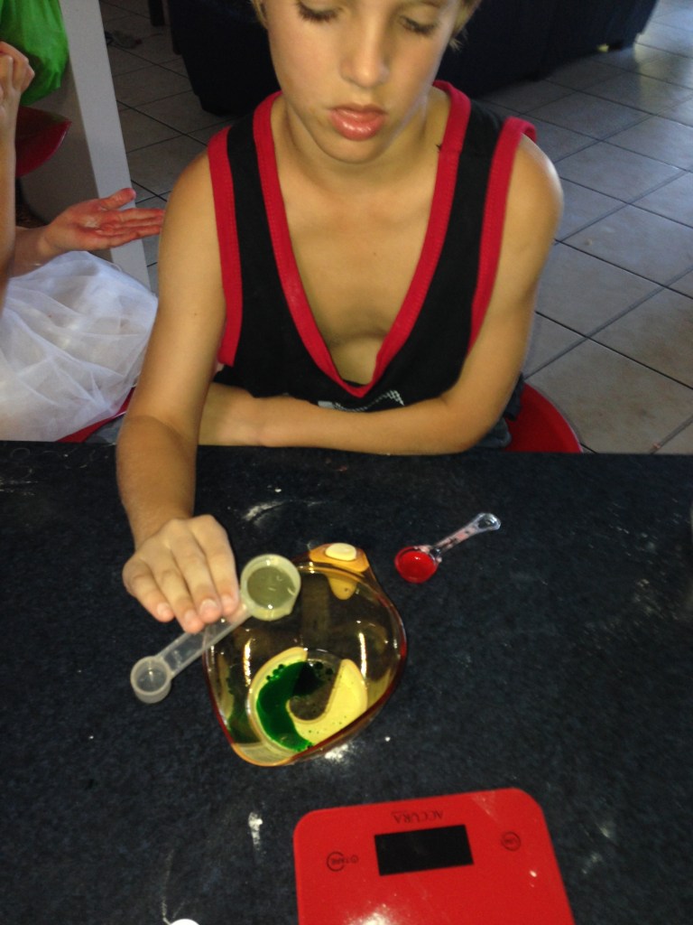 IMG_3992 Published December 10, 2013 at 2448 × 3264 in Make Your Own Sensory Santa Slime. Mr8 measuring out the wet ingredients into a separate bowl