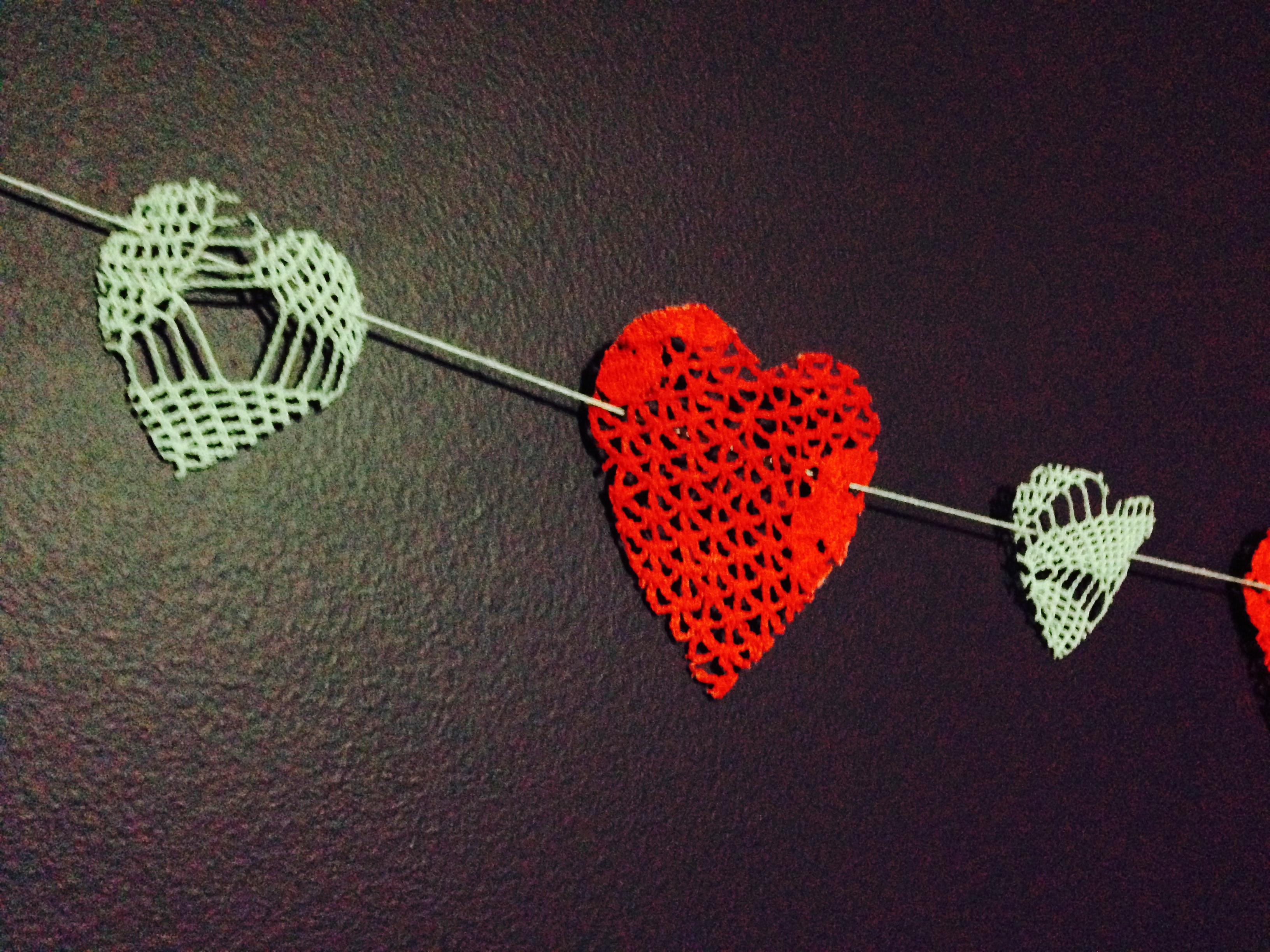 IMG_4335 Published January 14, 2014 at 3264 × 2448 in Heart Garland, Valentines Craft Project Doily hearts,