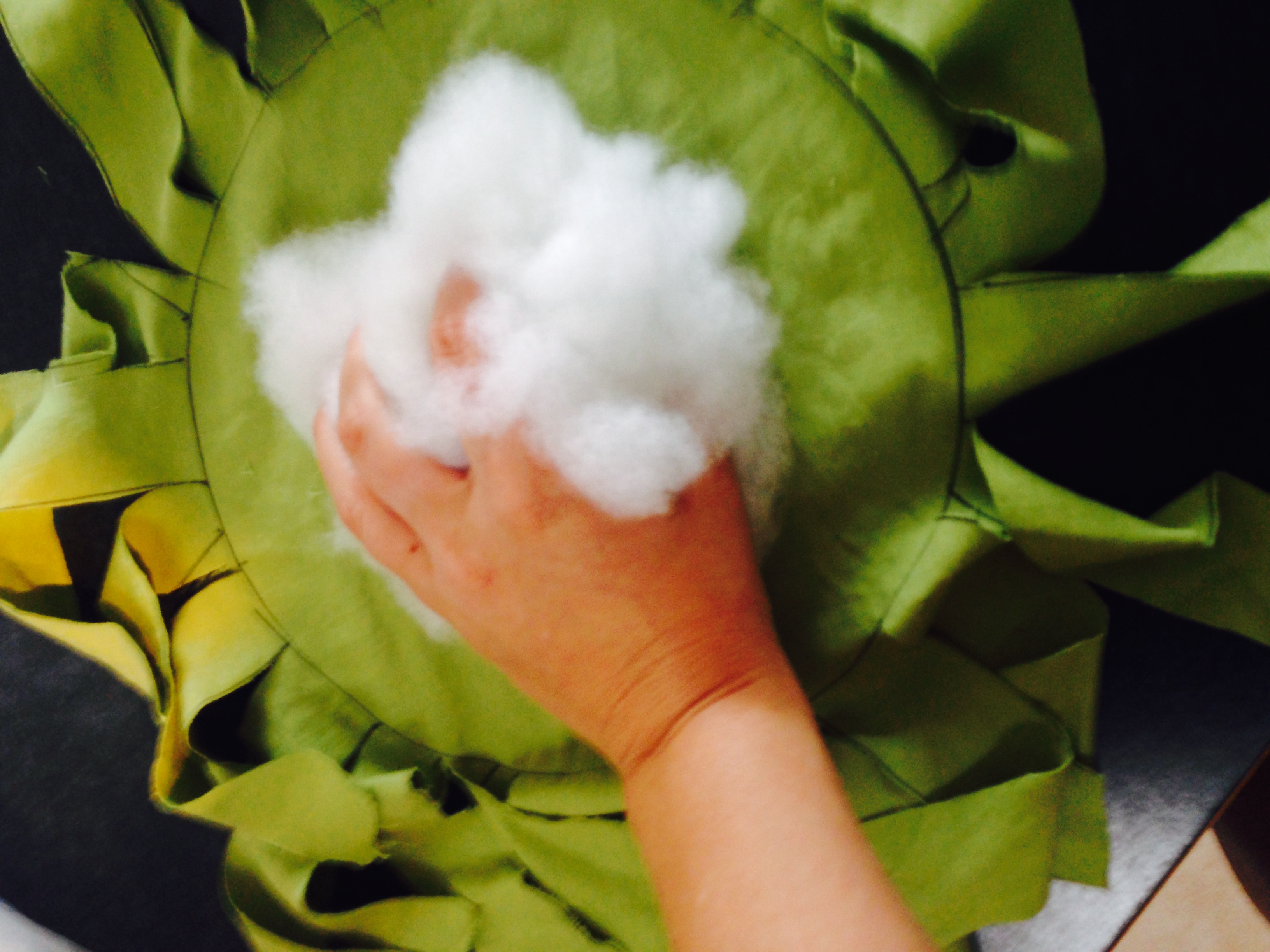 IMG_4406 Published January 17, 2014 at 3264 × 2448 in Sew-less Softie. Easy Craft Project. Place stuffing on the lined side and gather the fabric around