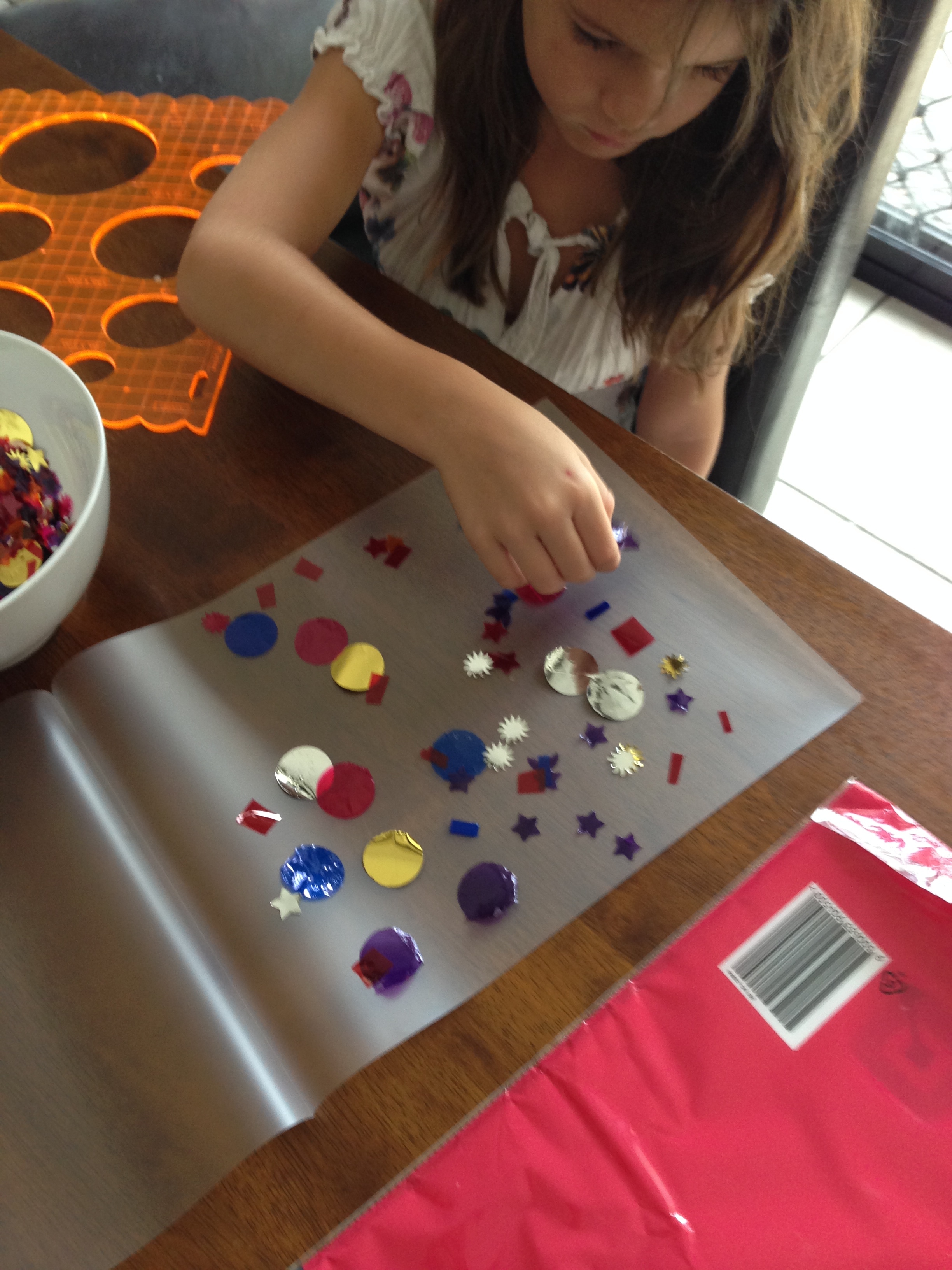 IMG_4684 Published February 26, 2014 at 2448 × 3264 in Easy Sun Catcher, Kids Craft Sprinkle over the laminating sheet,