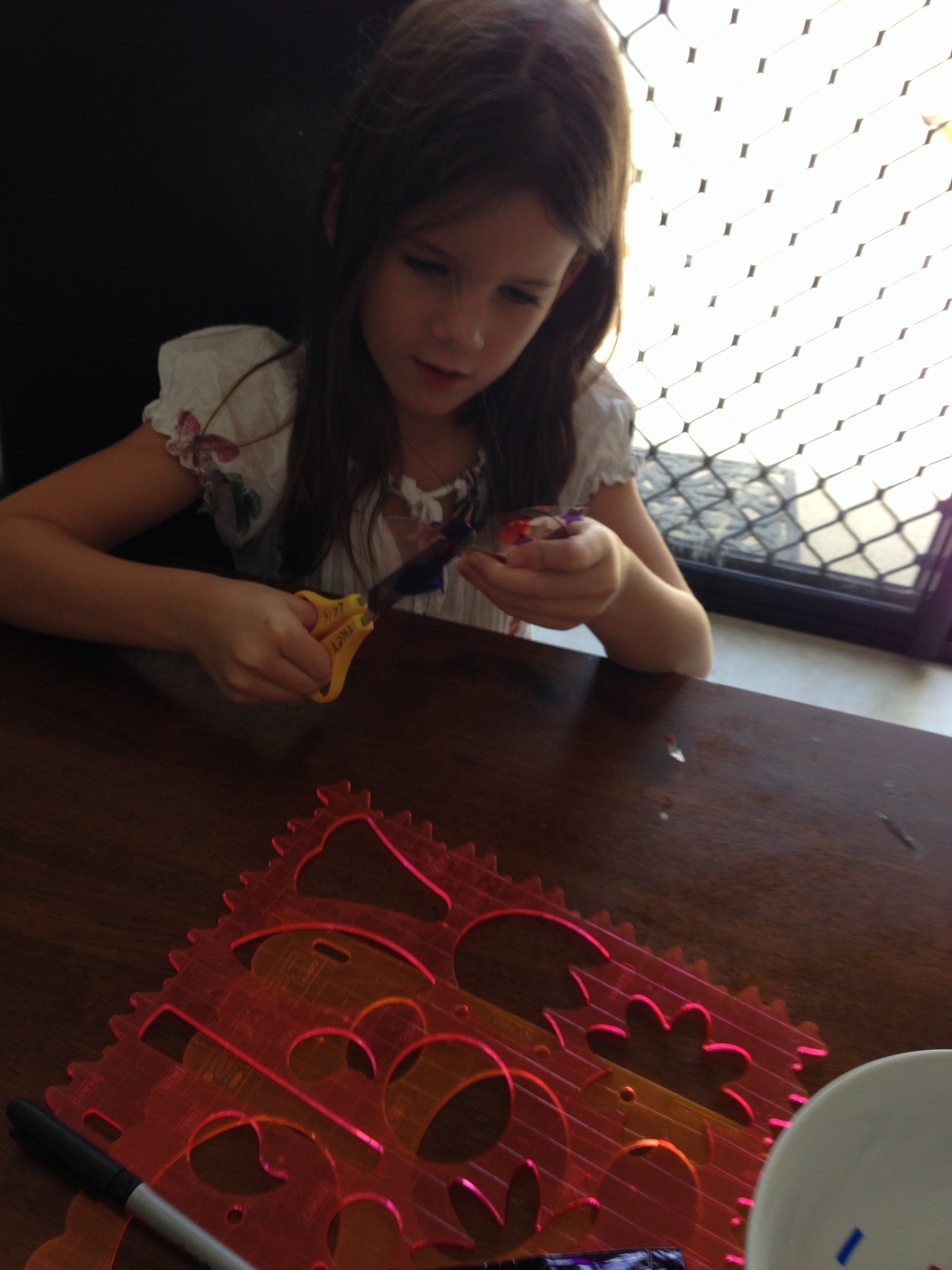 IMG_4691 Published February 26, 2014 at 2448 × 3264 in Easy Sun Catcher, Kids Craft Trace out some shapes with a marker then cut out.