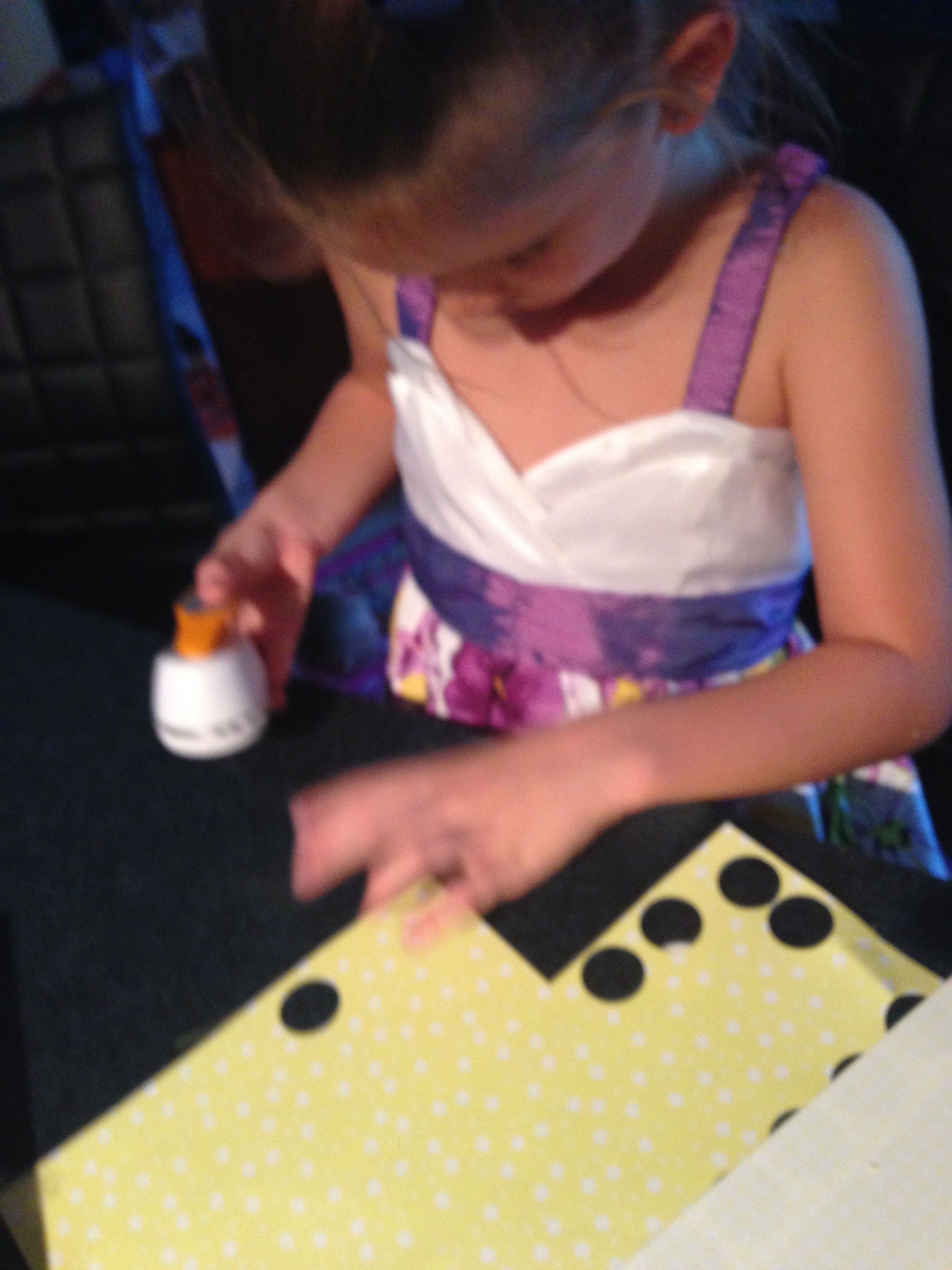 IMG_4770 Published February 28, 2014 at 2448 × 3264 in School Hair Clips and Hot Glue Burns. Ms5 cutting out the paper circles using a 1″ punch.