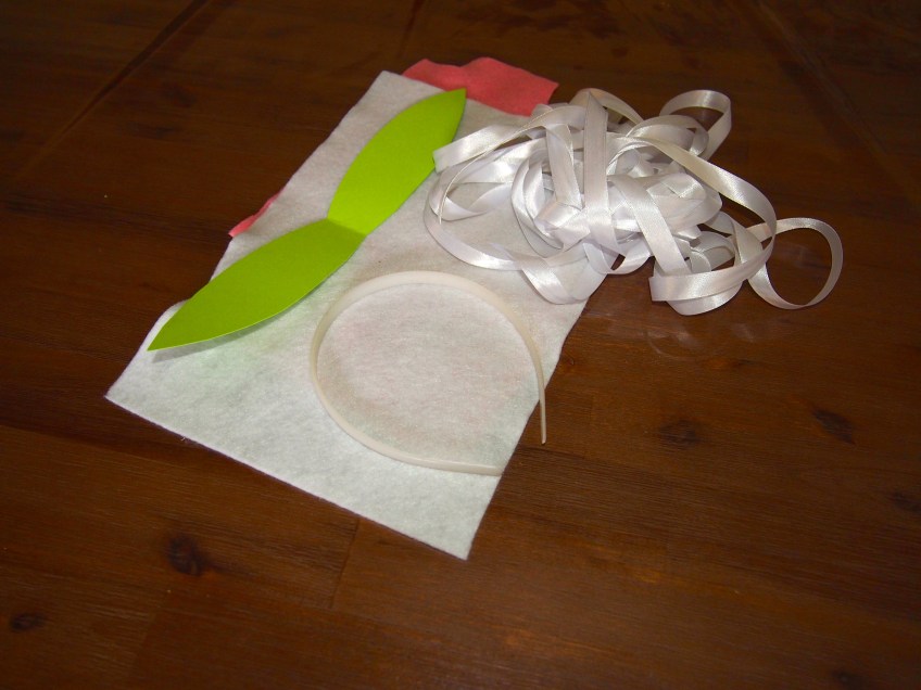 OLYMPUS DIGITAL CAMERA Published March 13, 2014 at 4032 × 3024 in Make Your Own Easter Head Bands Felt, plain headband, ribbon, scissors and pipe cleaners.