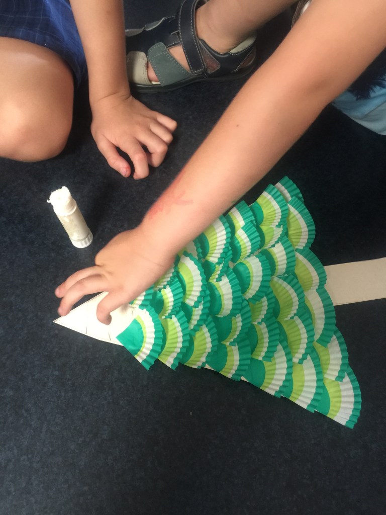 IMG_7072 Published November 28, 2014 at 2448 × 3264 in Christmas Craft For Kids – Cup Cake Christmas Trees. Mr4 has a turn.