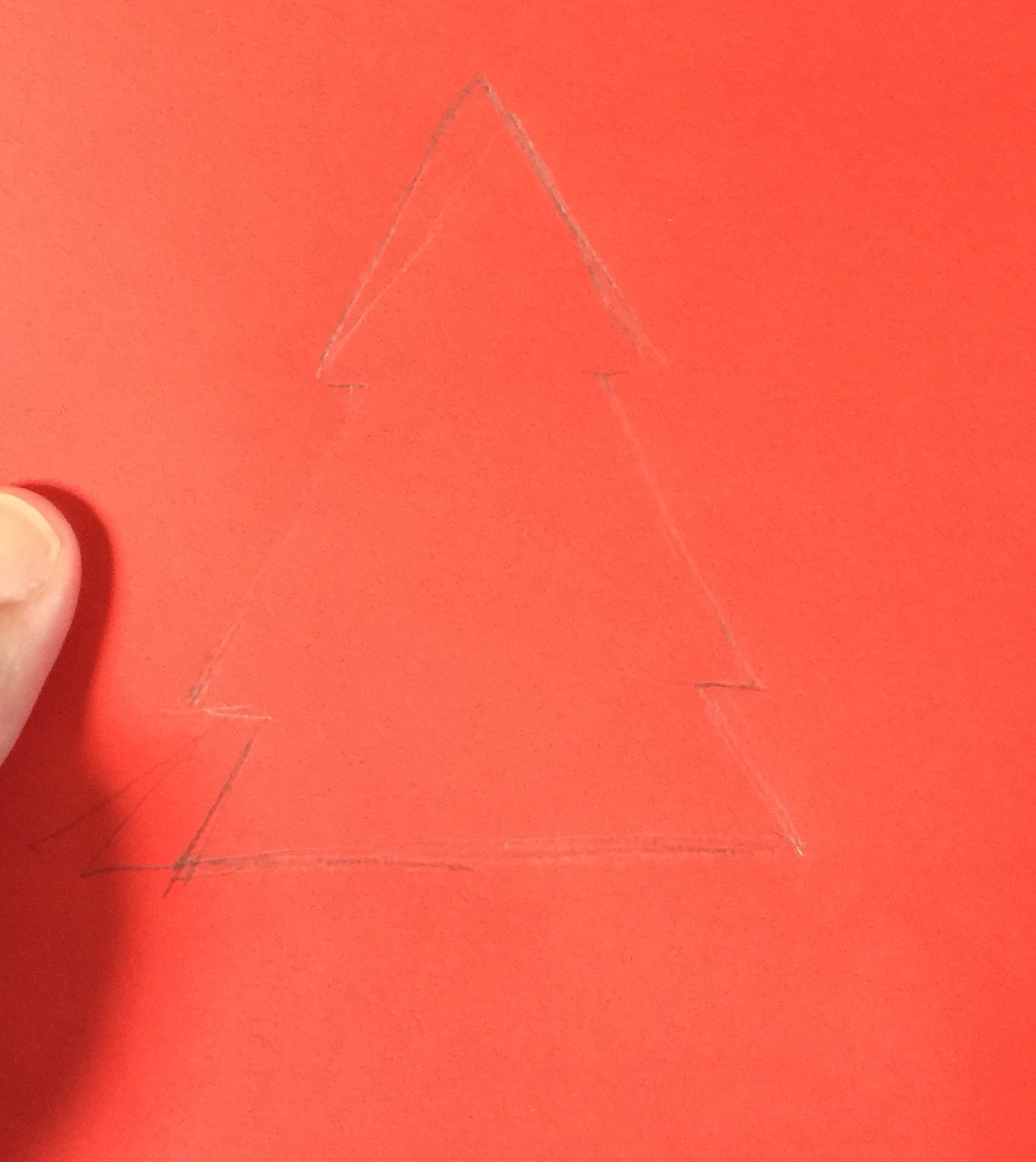Fold the other coloured paper in half to double it over then bring all 3 pieces together and cut along the outline so you end up with 3 identical shapes.