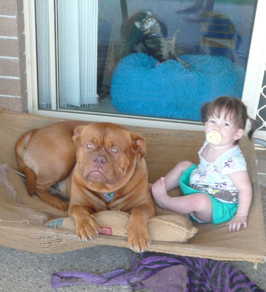Dogue De Bordeaux Published February 3, 2013 at 1213 × 1330 in Dogs Sharing her bed with the baby. Like Loading...
