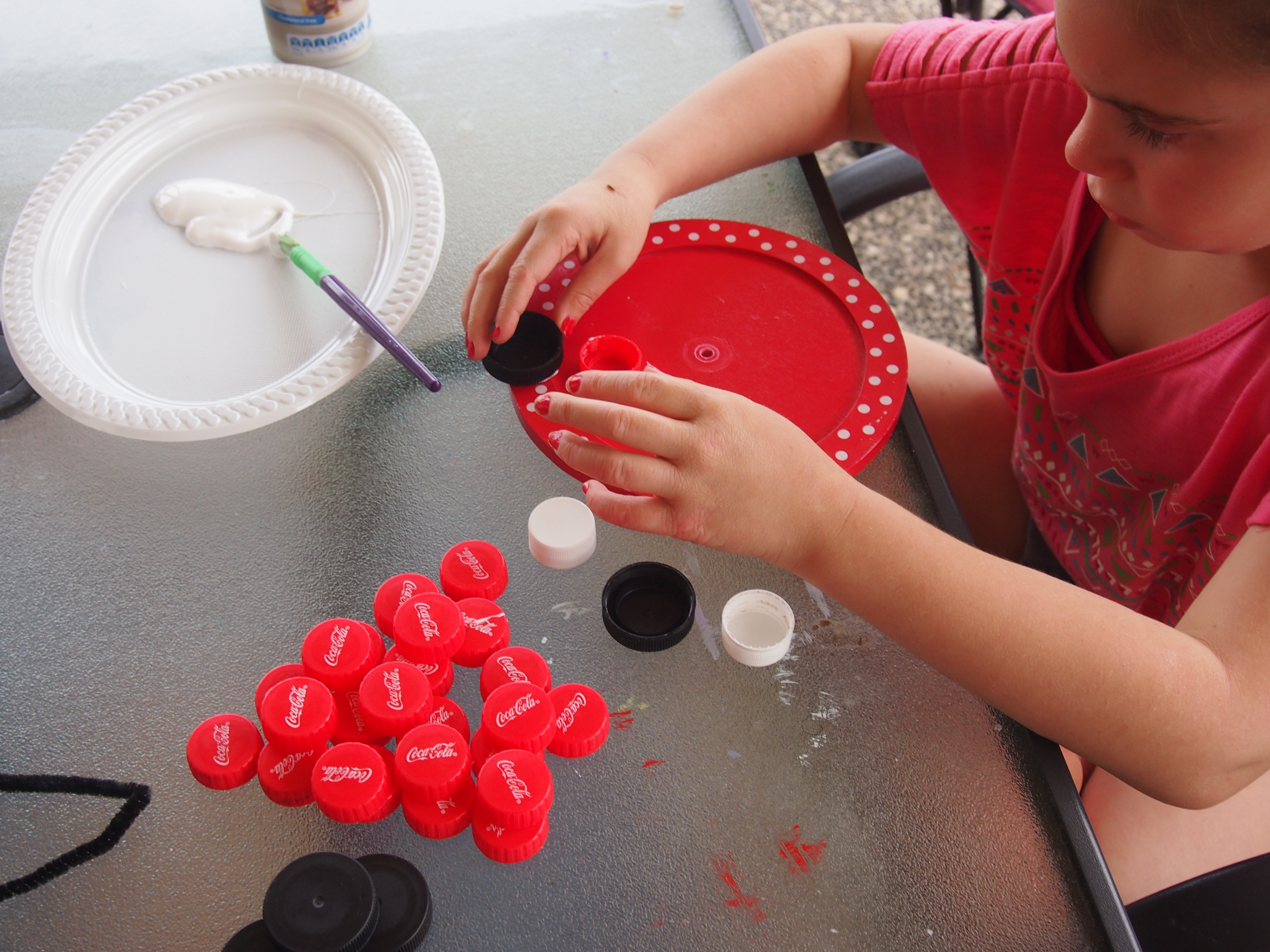 OLYMPUS DIGITAL CAMERA Published January 3, 2014 at 4032 × 3024 Let the kids glue the caps all over the circle shape