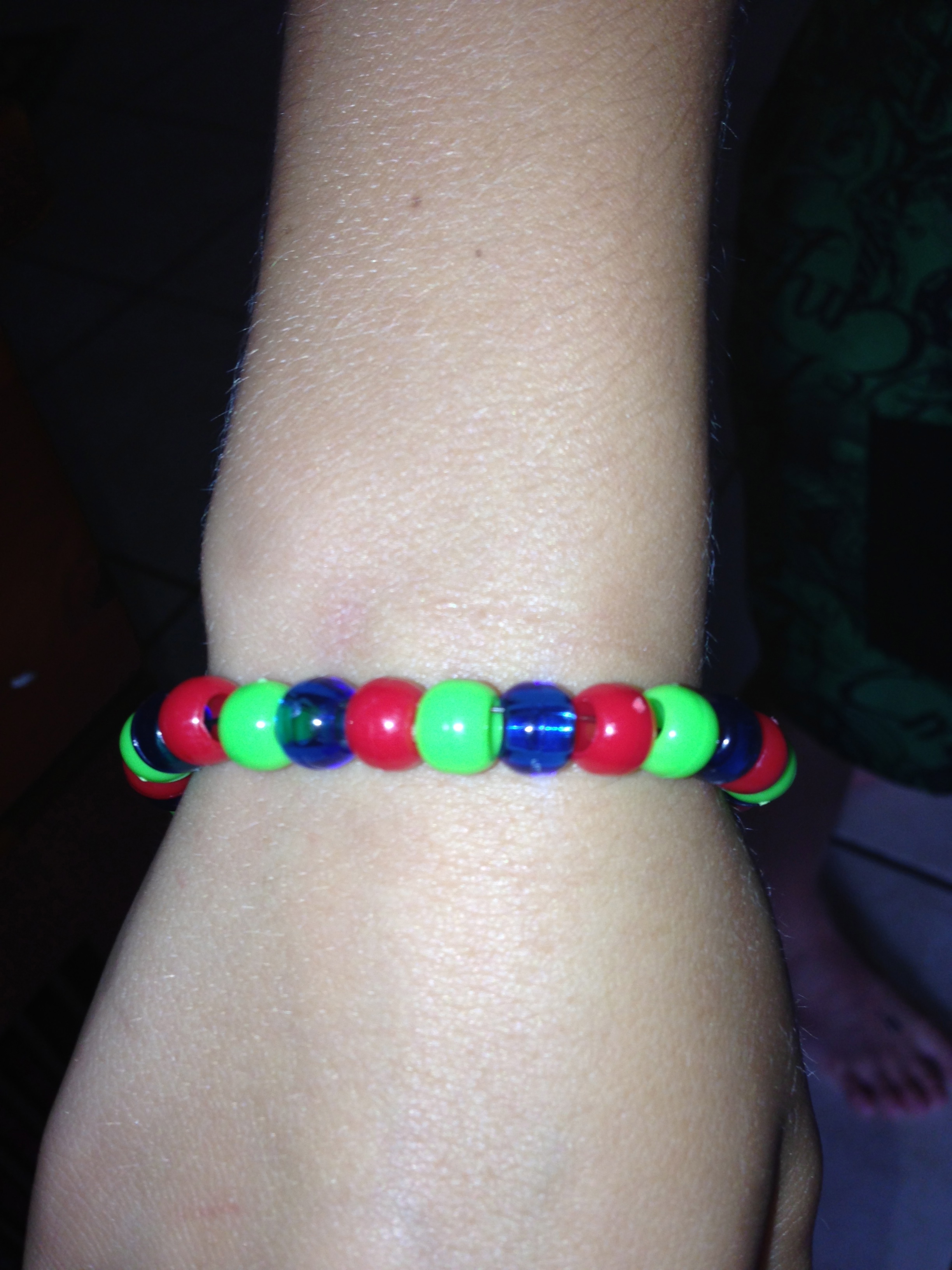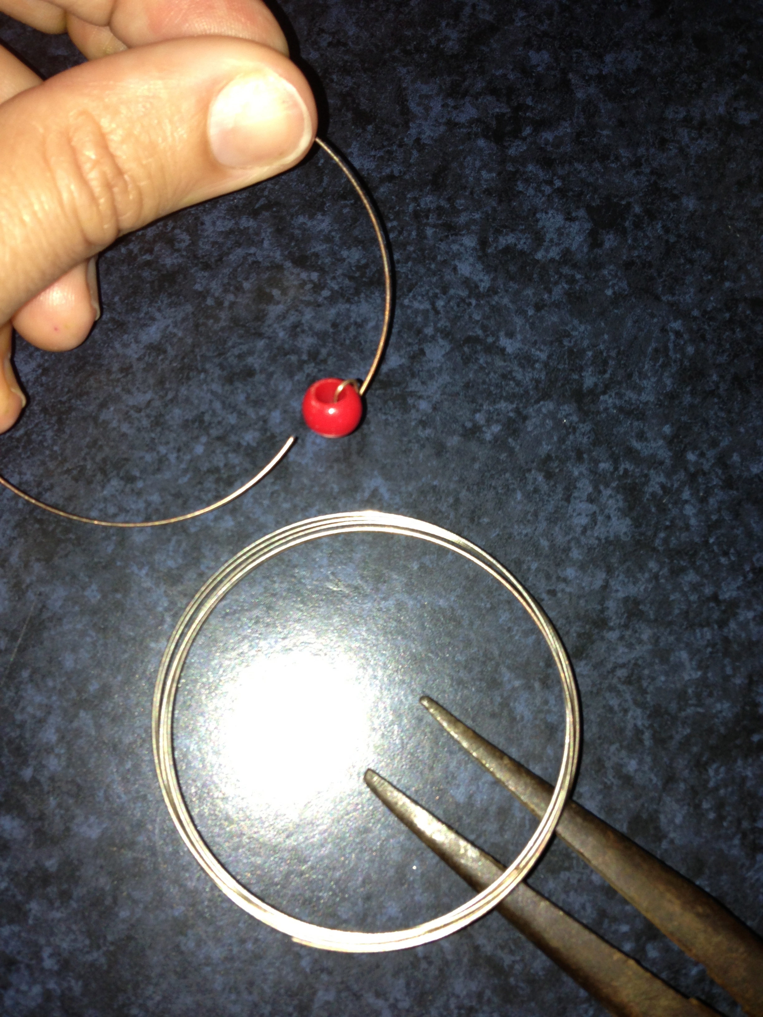 Once baked and cooled, it was time for assembly. Mr 5 and Miss 6 were happy to help decorate the pieces of fishing line with some chunky transparent glass beads I had in my bead stash.