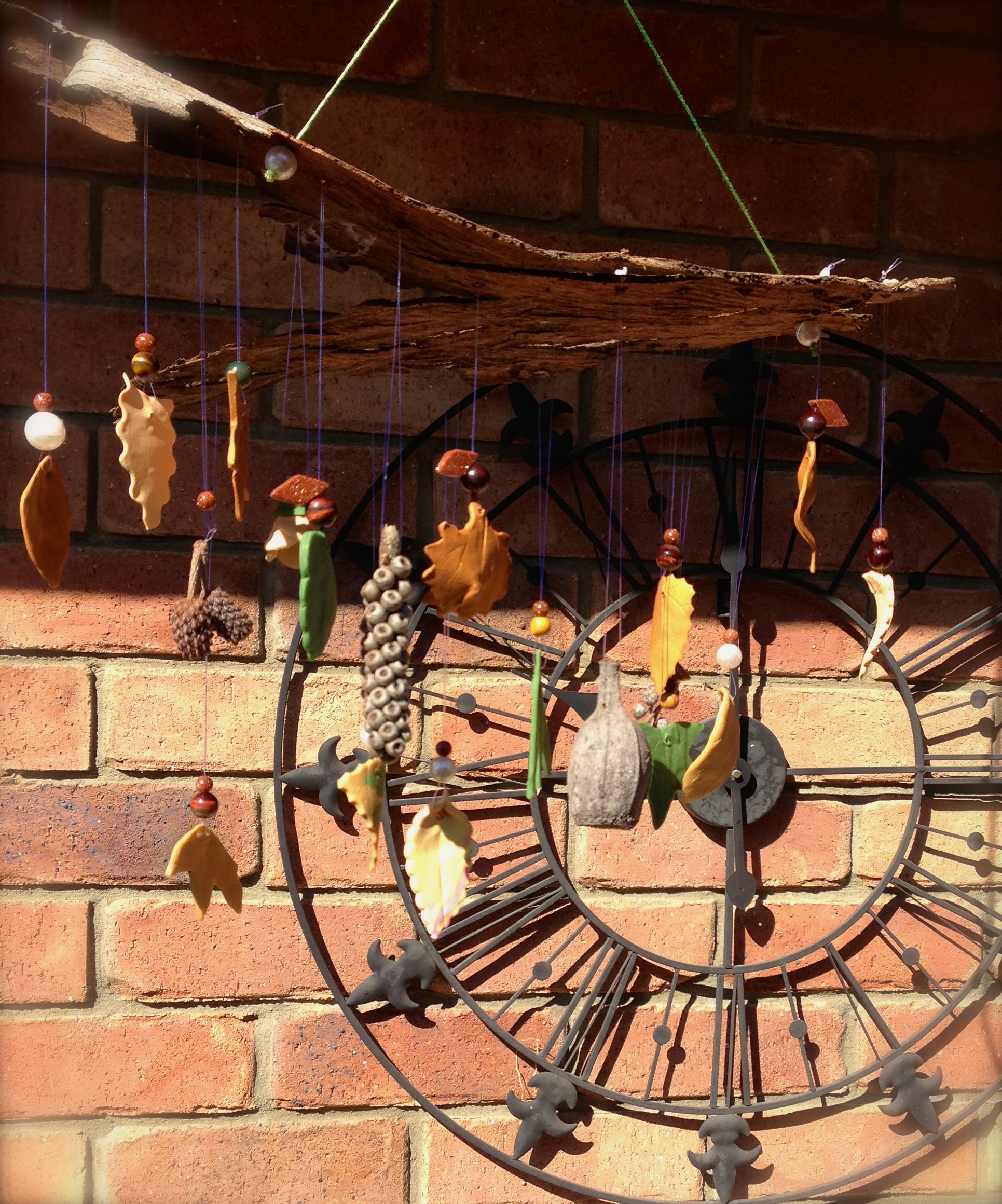 I have had this idea in my head for a while, but wasn’t sure what medium to use.  This product is really fun and easy to work with, however, it sets more like a hard rubber than a ceramic clay, so it did not achieve the wind chime noise I had in mind.  Oh well, its still pretty!